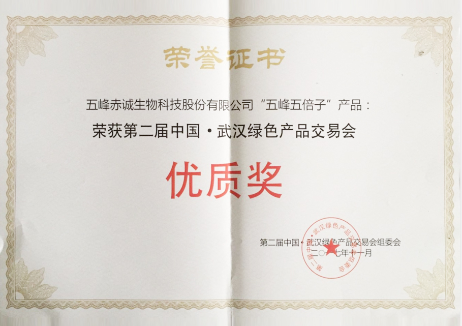 五峰五倍子 綠交會優(yōu)質(zhì)獎