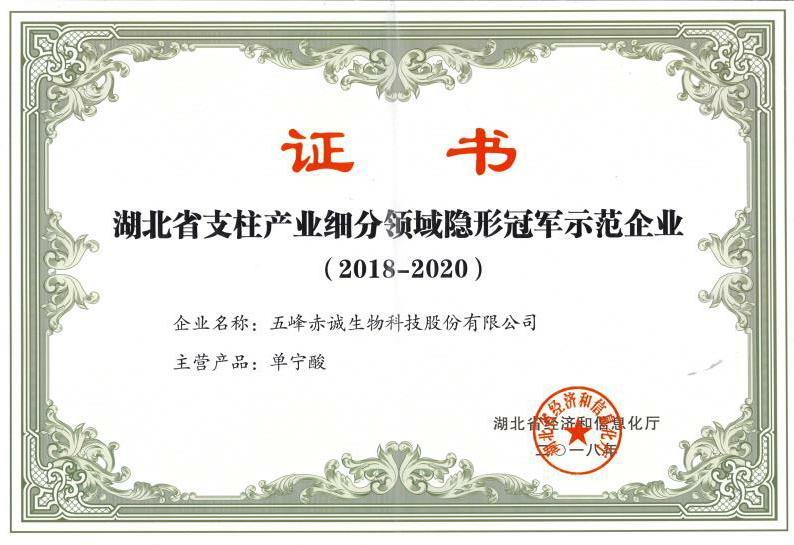 支柱產(chǎn)業(yè)細分領(lǐng)域隱形冠軍示范企業(yè)證書